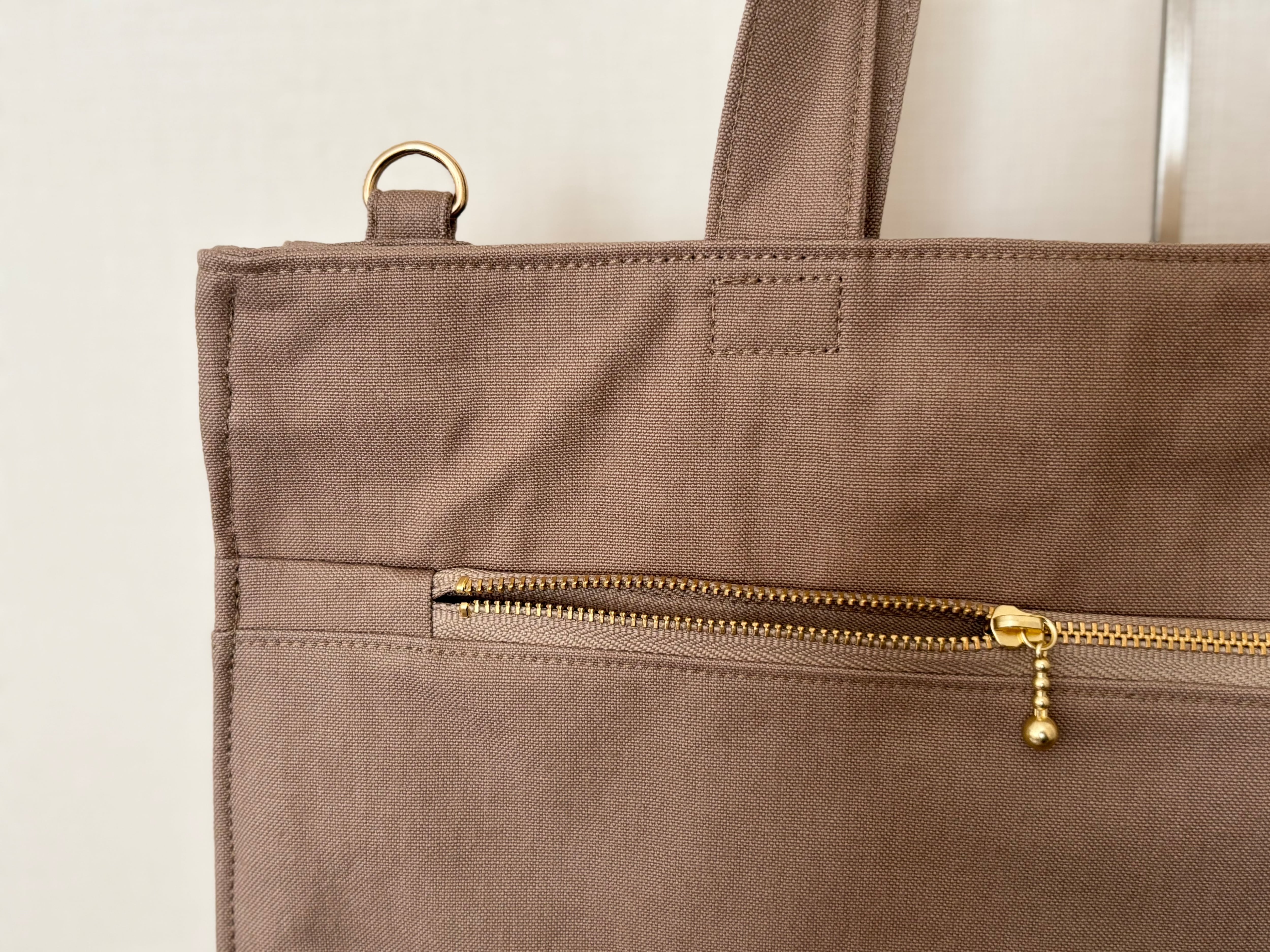 バッグの両サイドにあるDカンにショルダーストラップを取り付けると手提げとショルダーの2wayでお使いいただけるため、日常使いやお出かけなどシーンに応じた使い方が可能です。