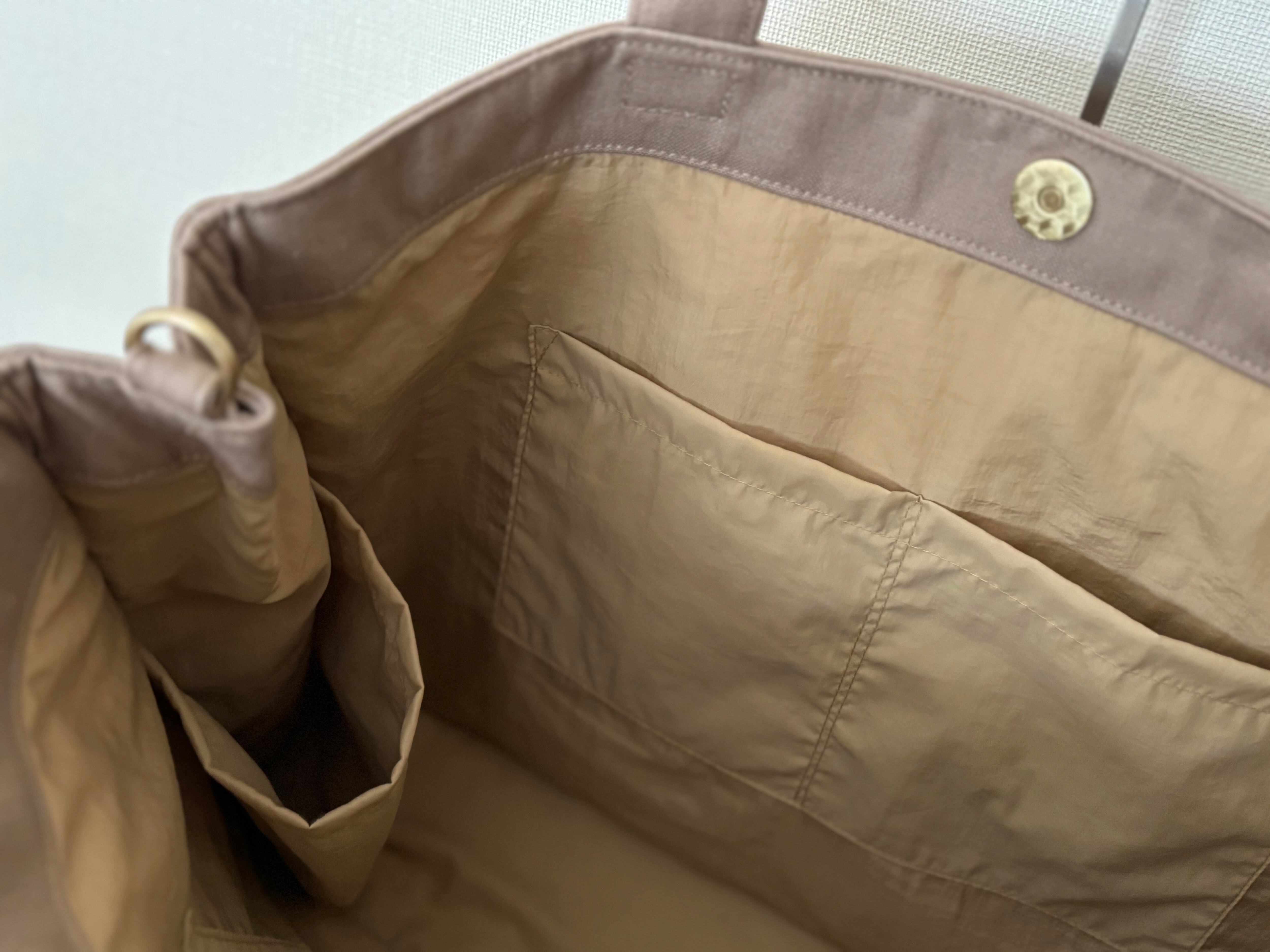 内側はナイロン生地なので物の出し入れがスムーズで、お手入れも簡単です。