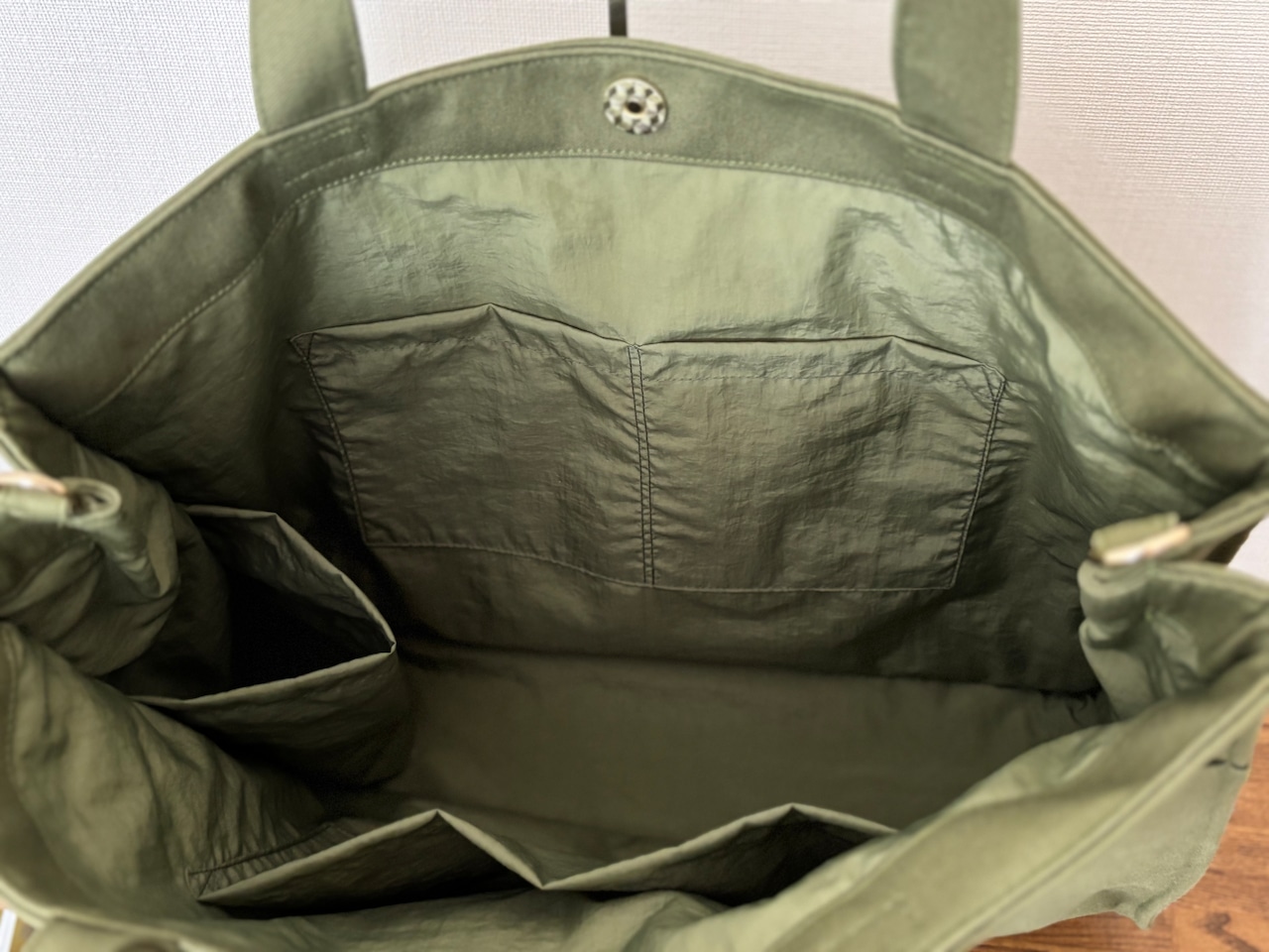 内側はナイロン生地なので物の出し入れがスムーズで、お手入れも簡単です。