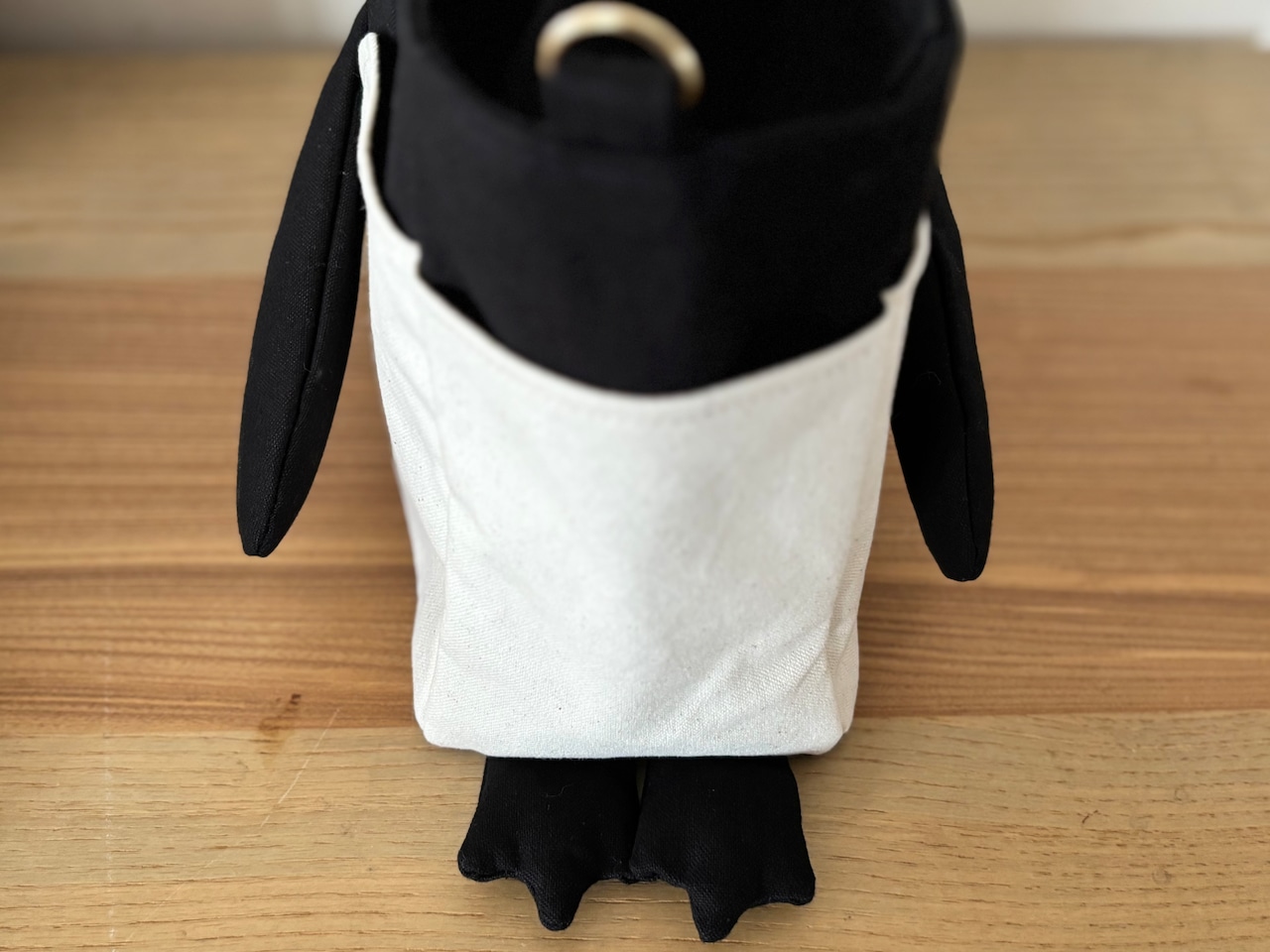 シンプルなトートバッグのように見えますが、よく見るとくちばし・足・フリッパーが付いています。
