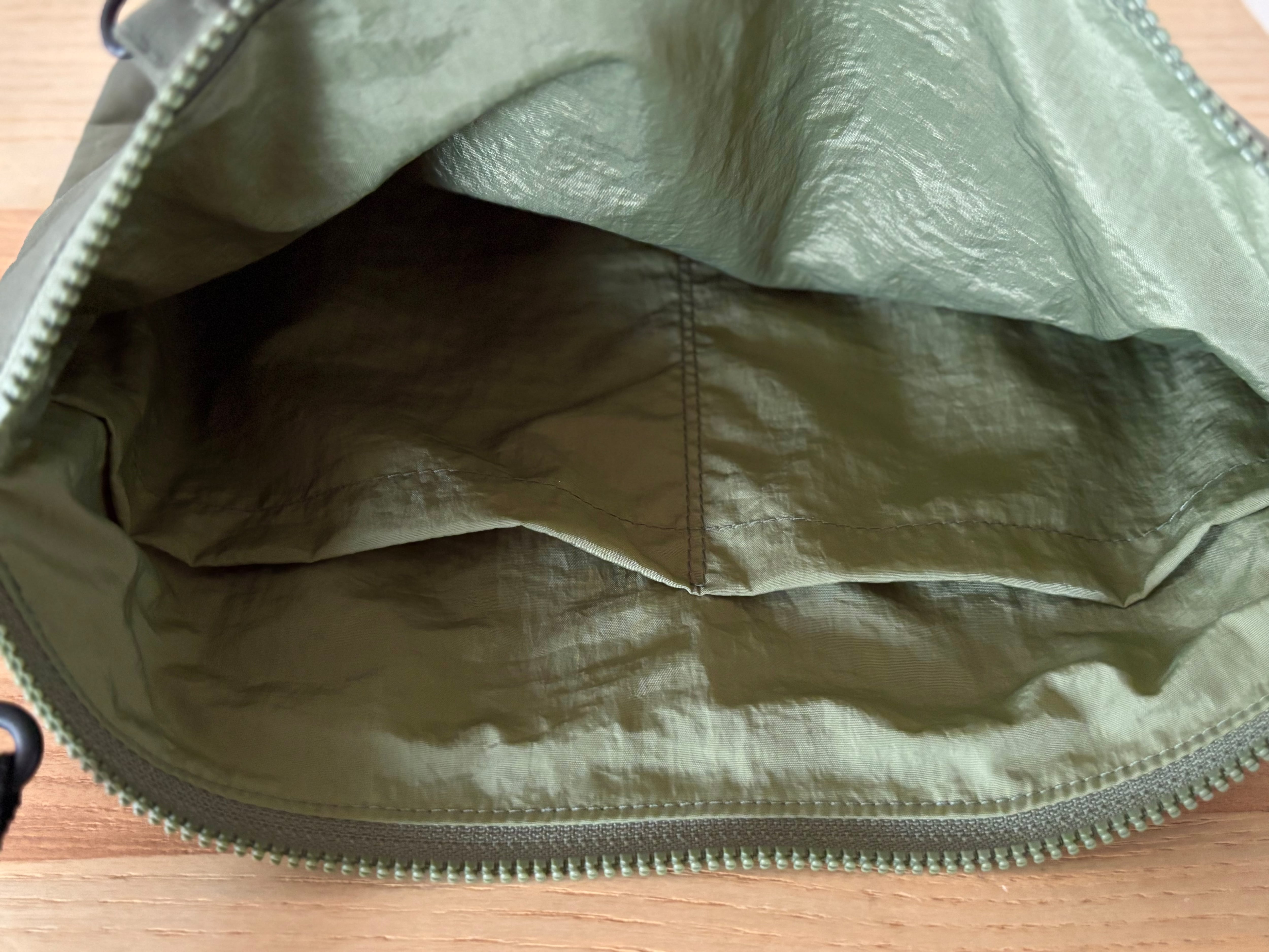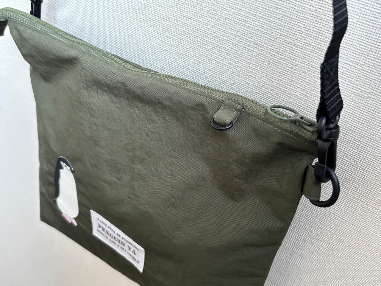 撥水加工が施されたナイロンワッシャー生地で作ったサコッシュです。