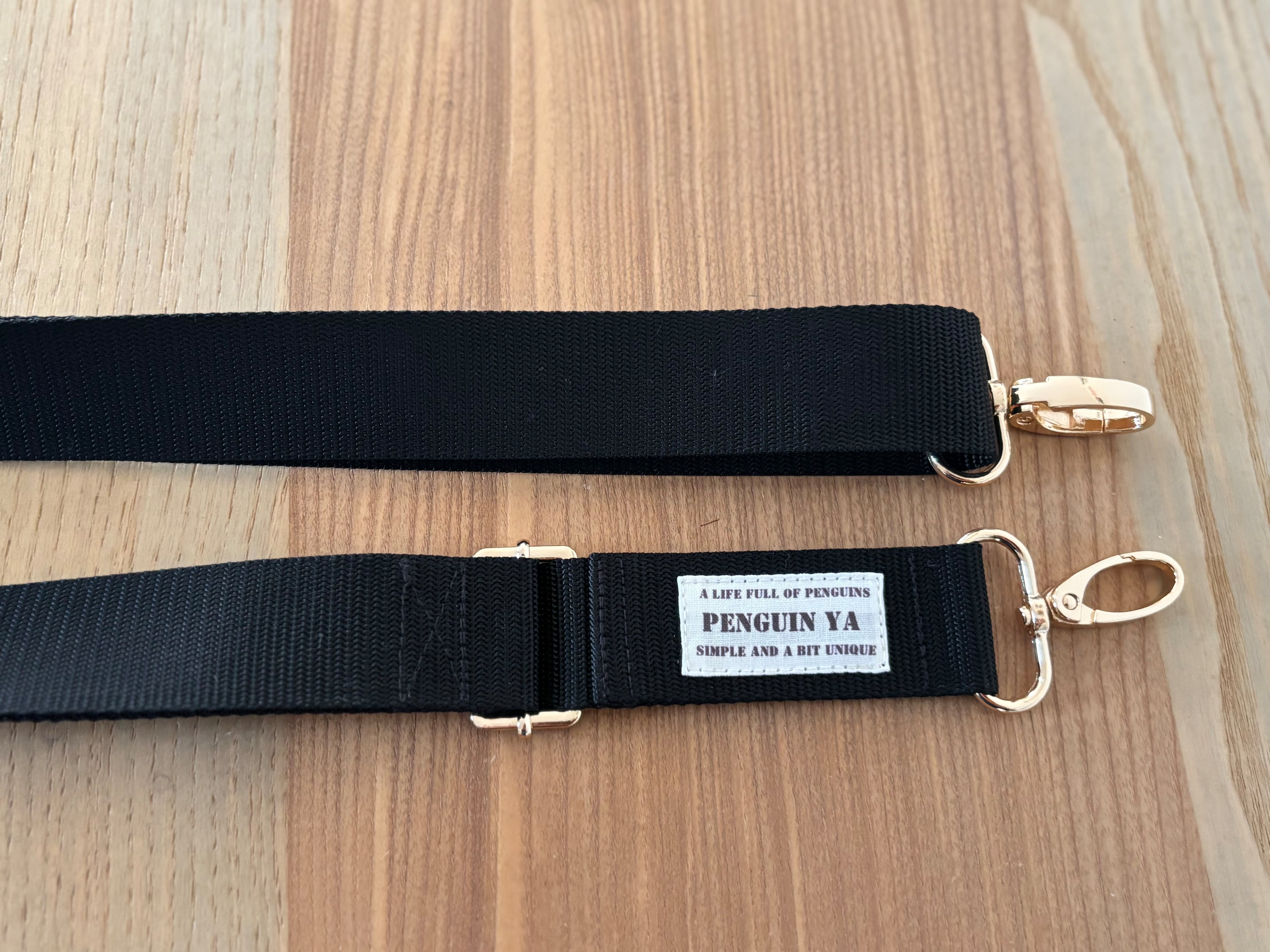 しなやかで光沢のある上質な国産PPテープを使用したペンギンのワンポイントが特徴的なショルダーストラップです。