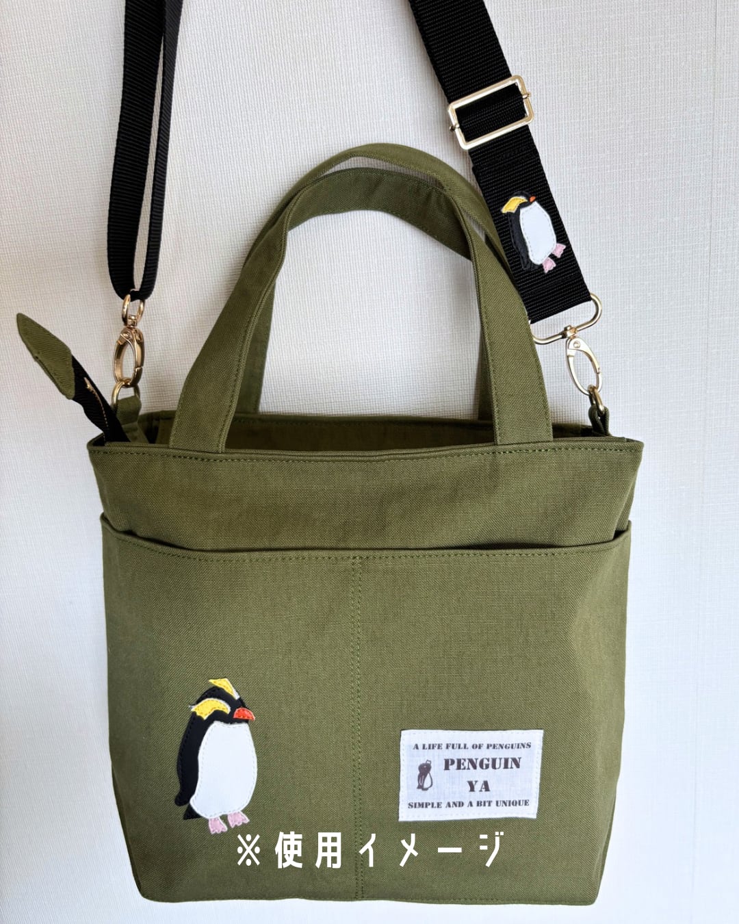 ぺんぎん家のトートバッグとセットでお使いいただくことはもちろん、お手持ちのバッグに取り付けることも可能です。