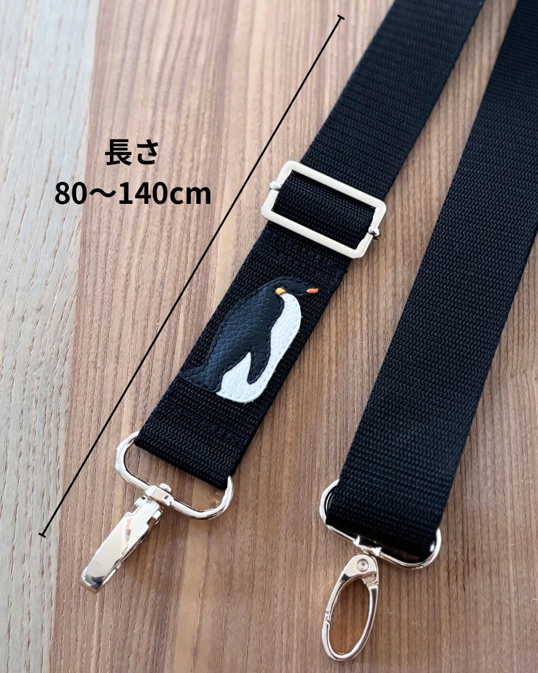 しなやかで光沢のある上質な国産PPテープを使用したペンギンのワンポイントが特徴的なショルダーストラップです。