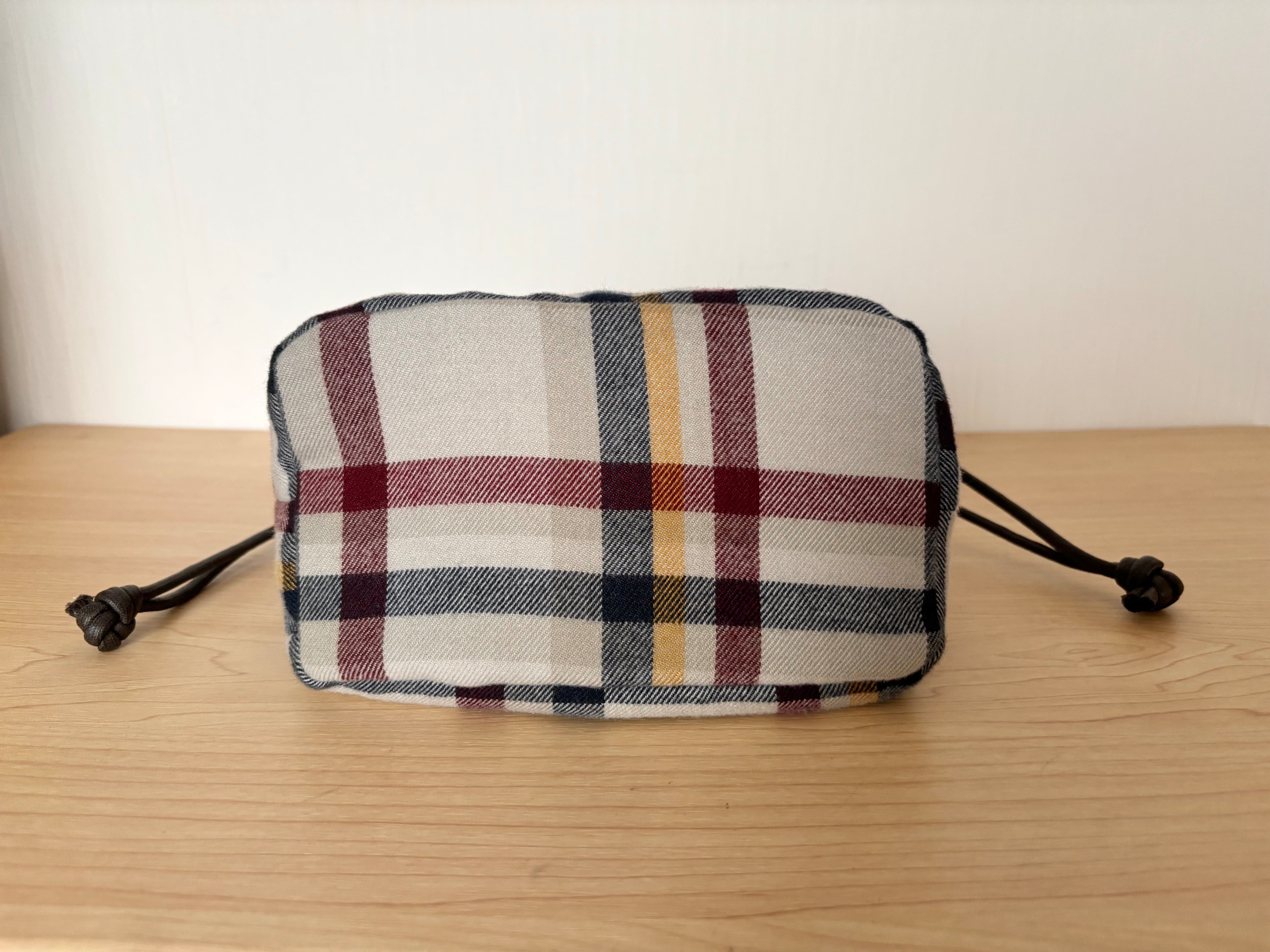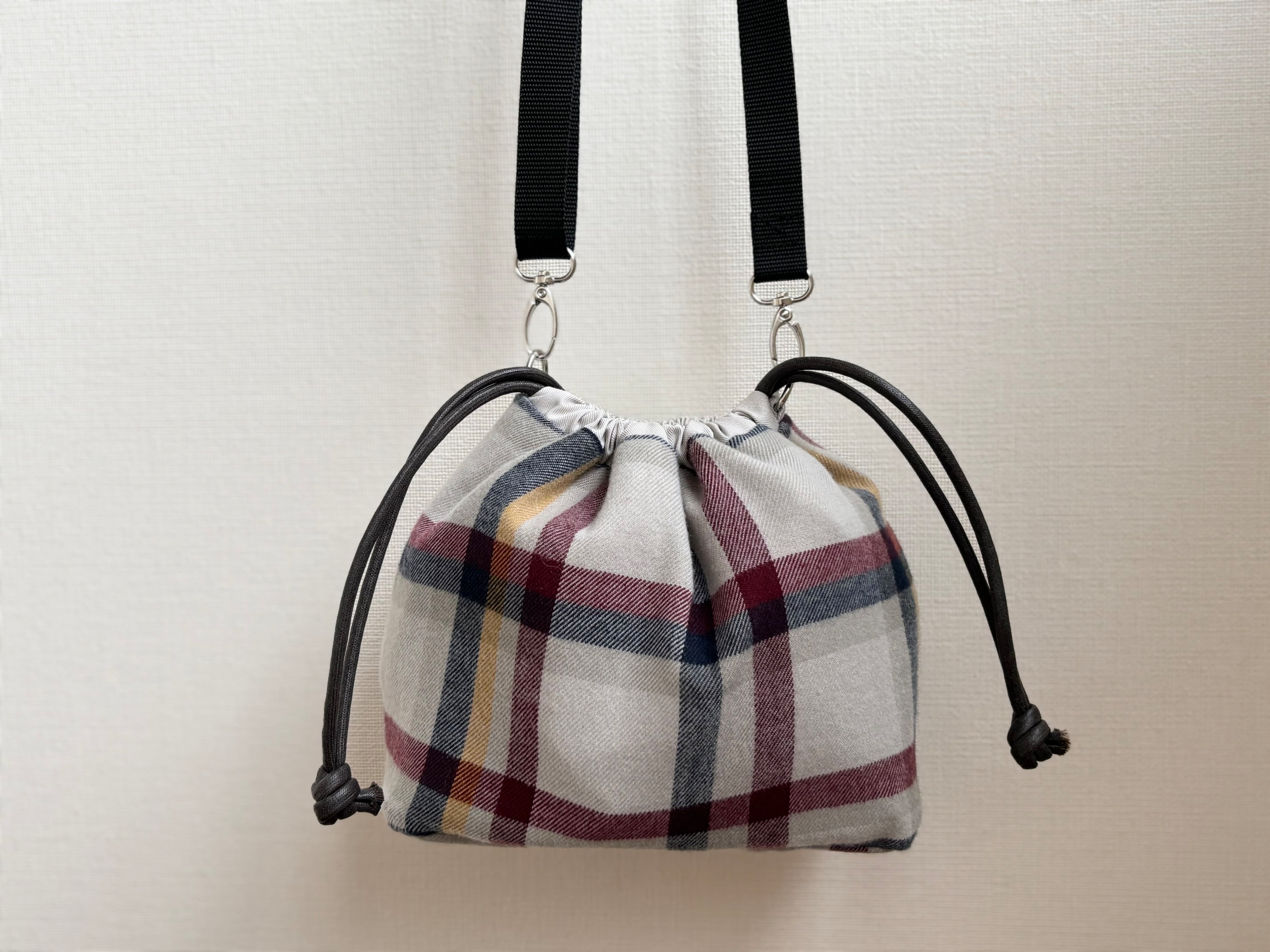 巾着タイプなので開け閉めも簡単、中にはポケットが2つ付いていて見た目以上に収納力もあるのでお出かけやお買い物にもおすすめです。