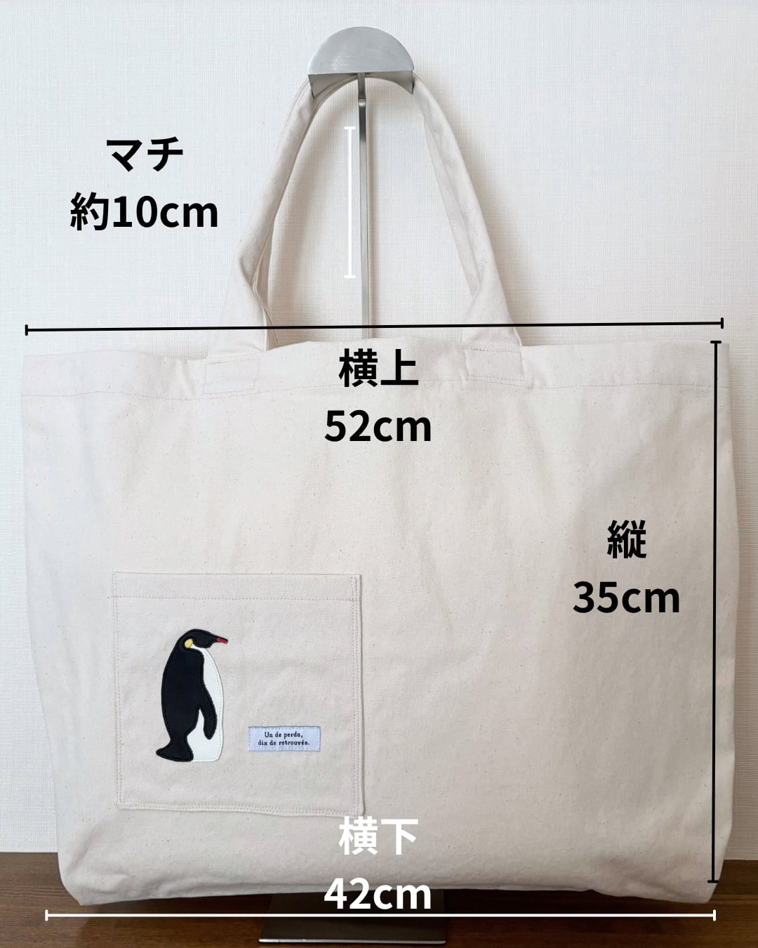 一枚仕立ての大きなトートバッグ ジェンツーペンギン
