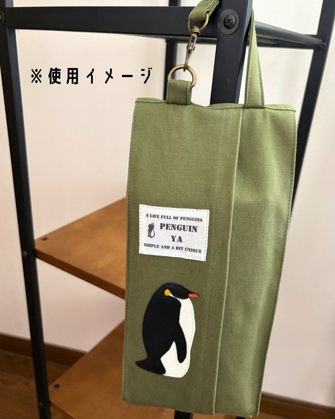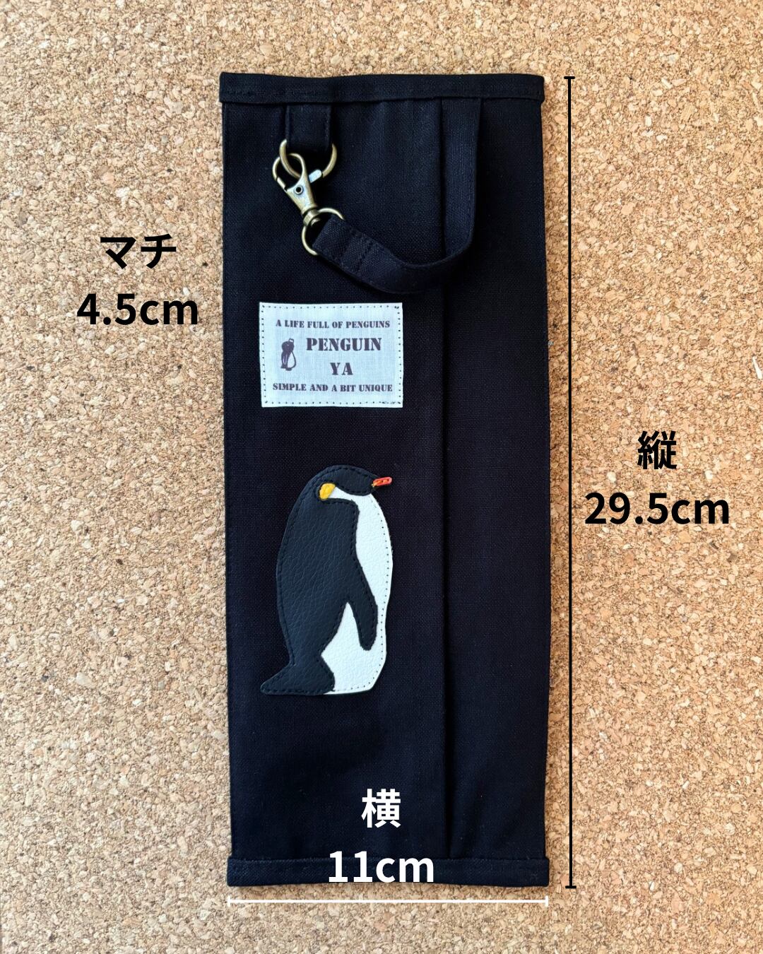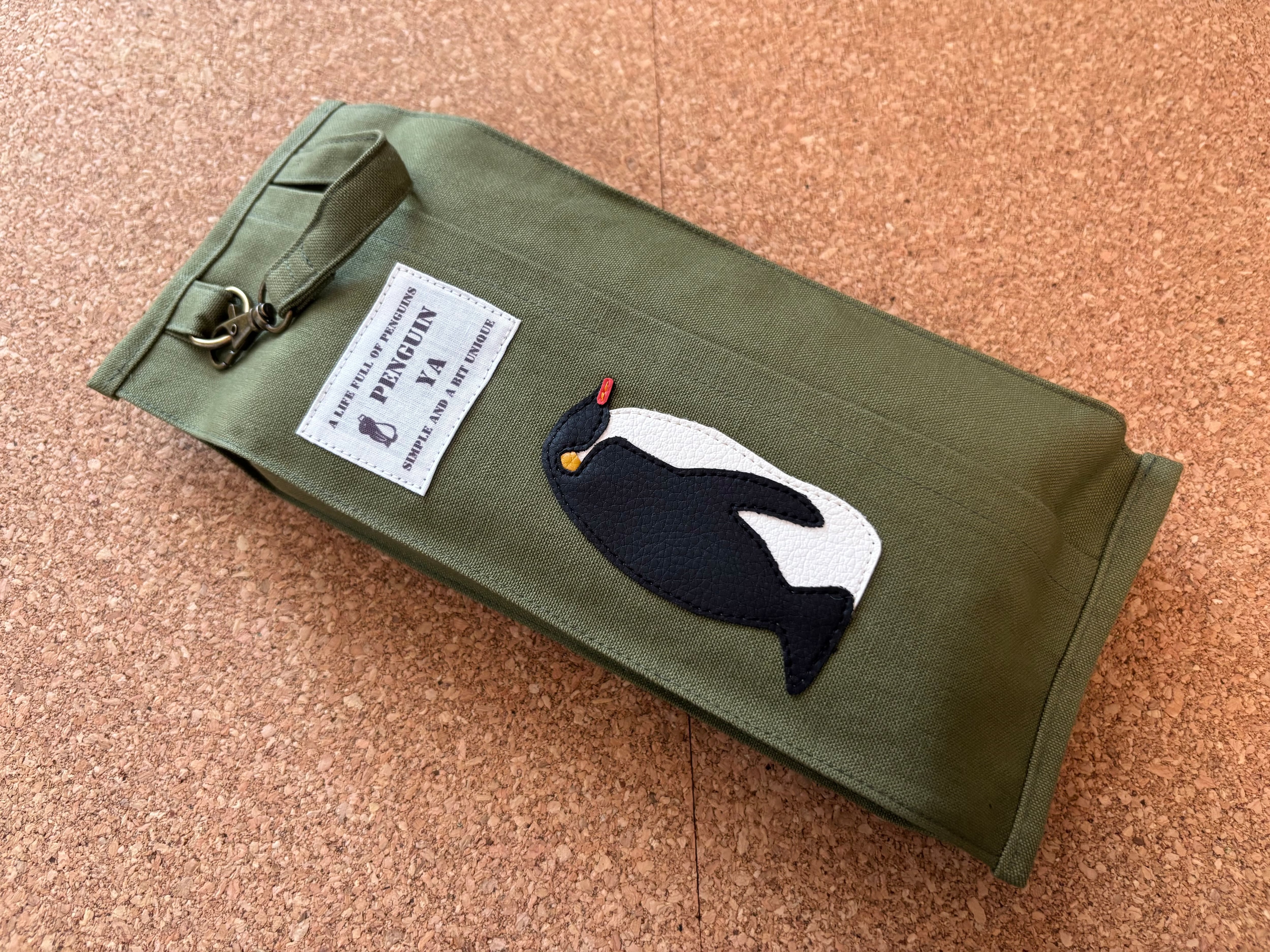 落ち着いた色味と素材感でインテリアにも馴染みやすく、コウテイペンギンのワンポイントがアクセントになっています。