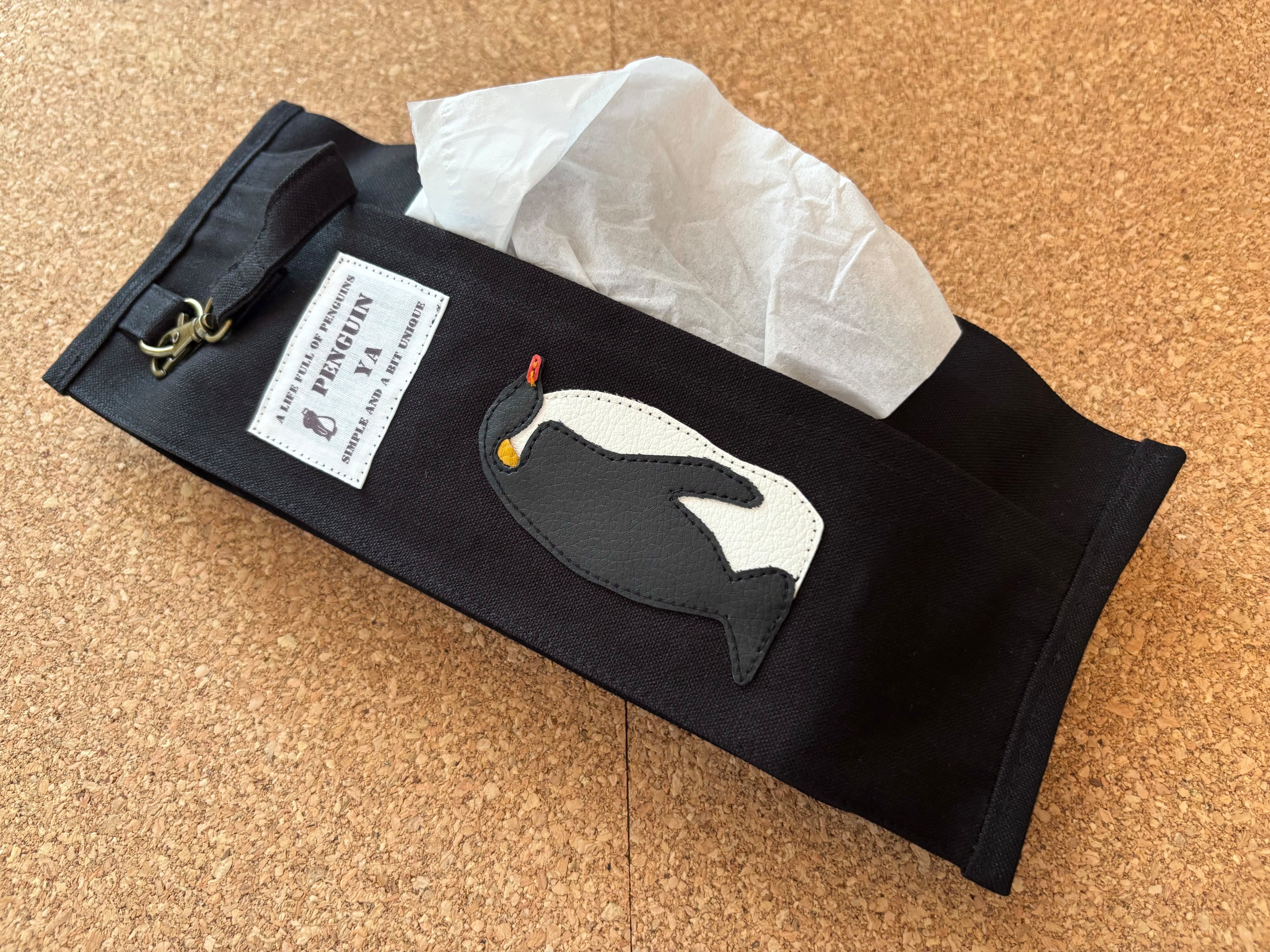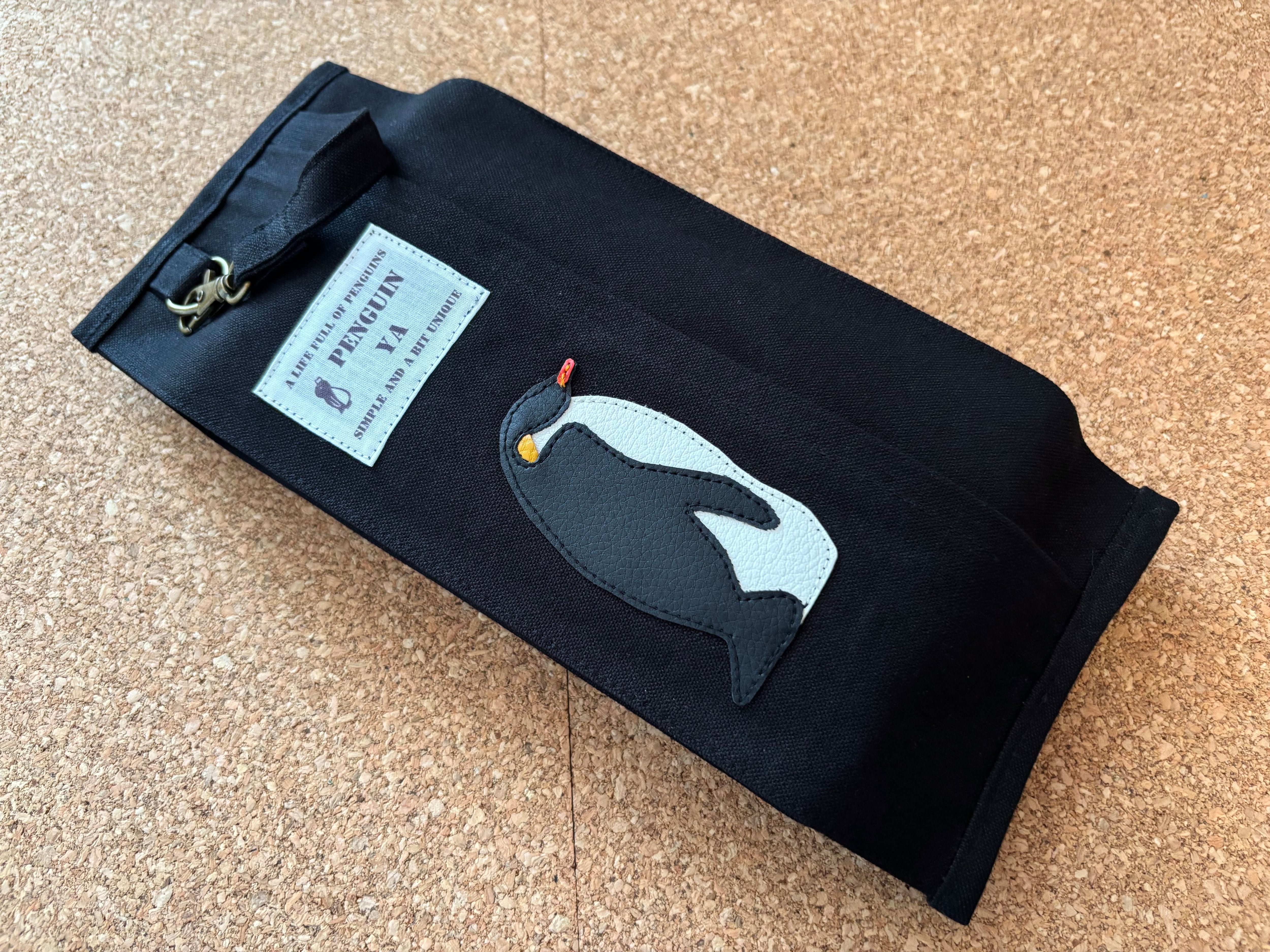 落ち着いた色味と素材感でインテリアにも馴染みやすく、コウテイペンギンのワンポイントがアクセントになっています。